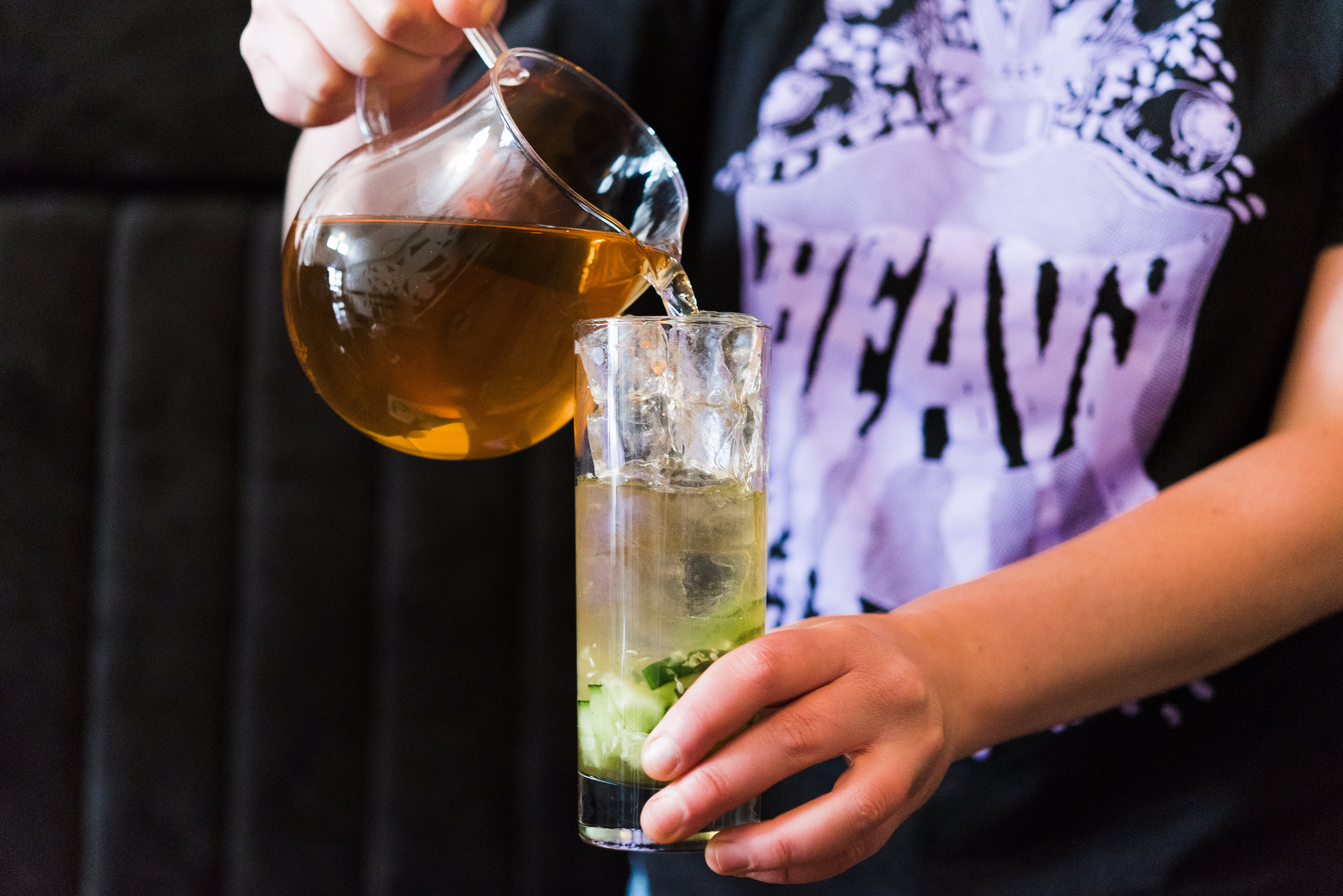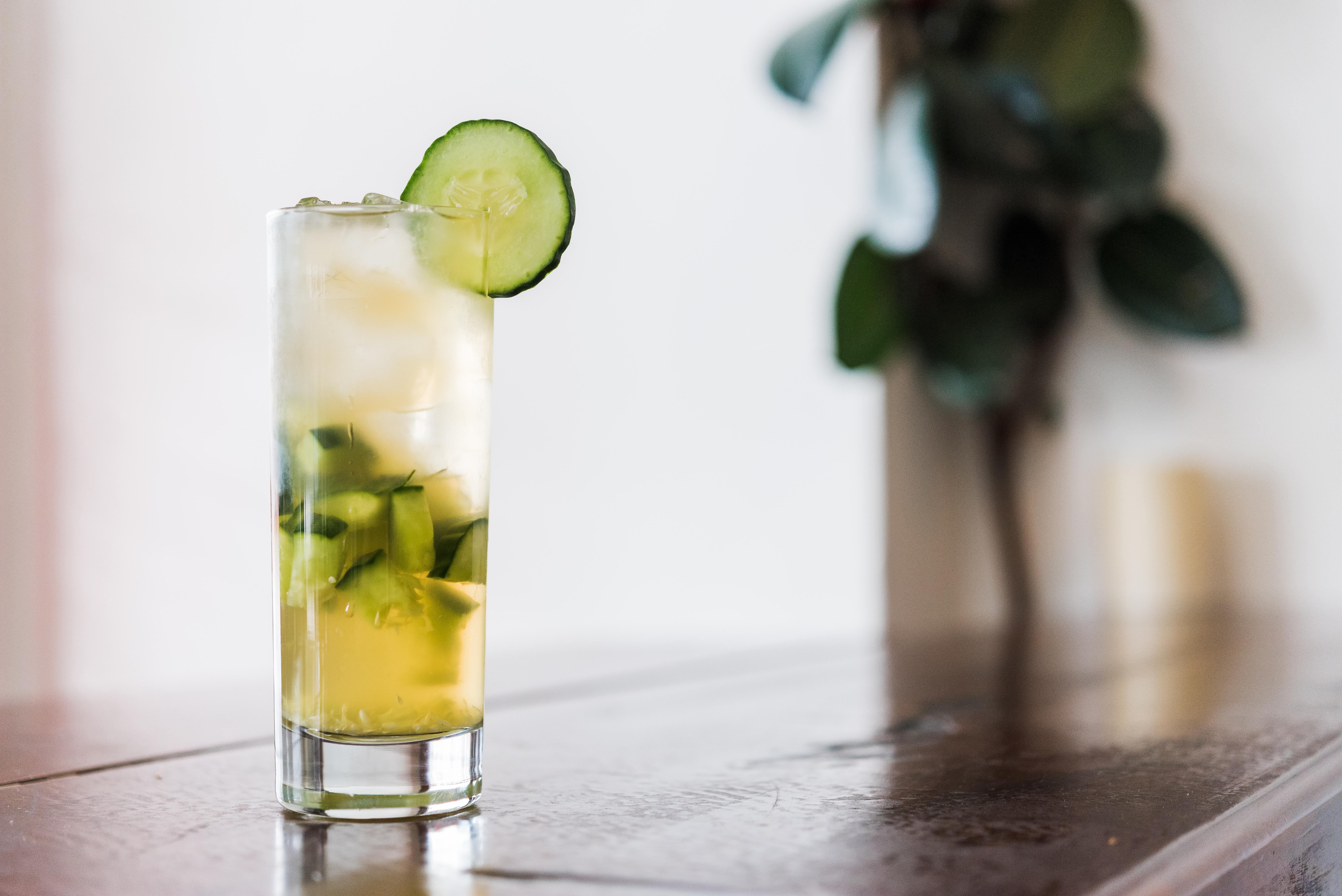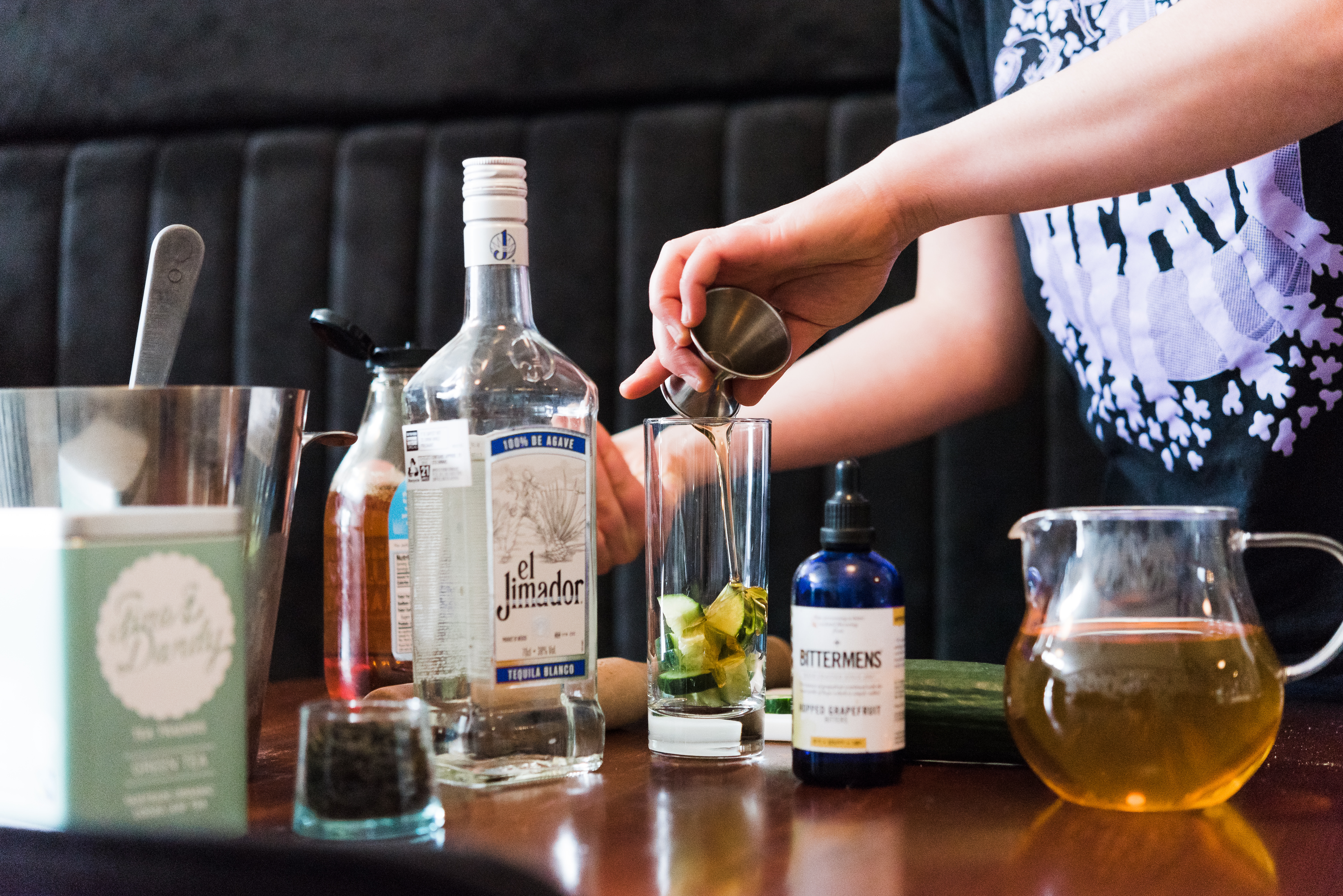 15ml Agave nectar 1/4 cup chopped cucumber 45ml tequila Hopped grapefruit bitters Iced Fine & Dandy Green tea Smash the cucumber and agave nectar with a cocktail muddling stick or the end of a wooden spoon. Add tequila, ice, bitters, iced green tea and serve in a tall glass. Garnish with a cucumber slice.